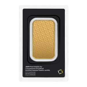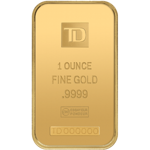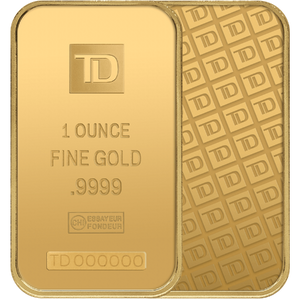 The 1 oz TD Gold Bar was introduced in 2019 with a new design. Minted by Valcambi, it is as elegant as it is classic. The 1 oz TD Gold Bar features the TD shield as the piece's focal point, along with a serial number and Valcambi's assay mark. Grow your portfolio with this quality bullion.