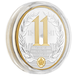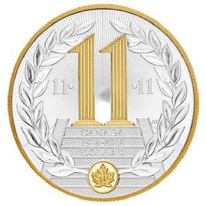 Commemorate 100 years of the Armistice of 1918 with the $1 Armistice WWI Silver Coin 2018. Produced by the Royal Canadian Mint, the coin has a selectively gold-plated reverse showcasing a classically styled design, featuring peace laurels forming the number '11' and a gold-plated rim. The $1 Armistice WWI Silver Coin 2018 is a tribute to the enduring legacy of the Armistice and the courage of Canadian and Newfoundlander combatants. Limited to 15,000 mintage, the $1 Armistice WWI Silver Coin 2018 is a must-have addition for collectors seeking elegance and historical significance.