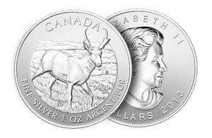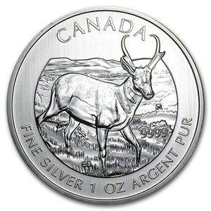 The 1 oz Pronghorn Antelope Silver Coin is a stunning addition to the Royal Canadian Mint's Wildlife Series, celebrating Canada’s majestic fauna. Struck in 99.99% pure silver, this coin features a detailed depiction of the Pronghorn Antelope in its natural habitat, showcasing exceptional craftsmanship. With a limited mintage and backed by the Canadian government, it’s a prized collectible for both investors and wildlife enthusiasts.