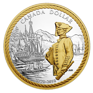 With every coin struck in 99.99% fine silver, we present the COMPLETE 240th Anniversary of Captain Cook at Nootka Sound Pure Silver Proof Set 2018. Featuring the proof dollar in selective gold plating showcasing Captain James Cook's arrival at Nootka Sound in April 1778, along with gold plated loonie and toonie. Details of the 240th Anniversary of Captain Cook Set are as follows: