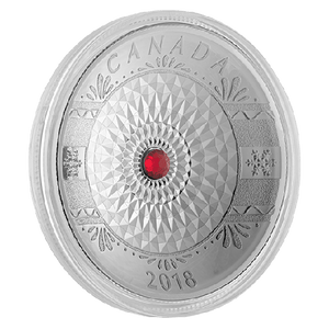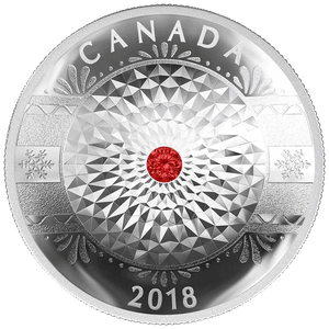 The $25 Classic Holiday Ornament Silver Coin 2018 is a festive concave shaped fine silver coin adorned with Swarovski® crystals. Meant to mimic a Holiday themed glass ornament, this coin is the perfect gift for the holiday season! The $25 Classic Holiday Ornament Silver Coin has a circular design of chiselled indentations with a festive red Swarovski® crystal in the middle.