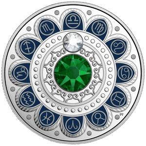 Introducing the $3 Fine Silver Zodiac Series Coin 2017 with Swarovski® Crystals edition. This exquisite collection comprises 12 coins, each representing one of the 12 zodiac signs. Adorned with two Swarovski® crystals, the clear crystal corresponds to the individual zodiac symbol, while the larger centerpiece crystal beautifully showcases the sign's unique color. Crafted with precision by the Royal Canadian Mint, the $3 Fine Silver Zodiac Series Coin 2017 is an exceptional choice for a birthday gift. Start your collection today and gather all the $3 Fine Silver Zodiac Series coins to create a captivating and complete set!
