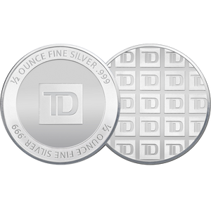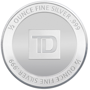 The 1/2 oz TD Silver Coin consists of 999 fine silver. The 1/2 oz TD Silver Coin features the TD shield as the piece's focal point, along with the coin's purity, composition, metal and weight. On the reverse, the silver coin features a diagonal array of the TD logo. The silver coin is perfect for new investors getting into the precious metals market. Add the 1/2 oz TD Silver Coin to your portfolio today.