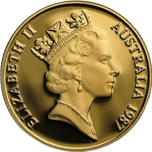 This 1987 $200 First Fleet Departure Gold Coin was issued by the Royal Australian Mint to commemorate 200 years since the departure of the first fleet to Australia in 1787. The coin features a design of Captain Arthur Phillip holding a paper map with an outline of British Isles. The effigy of the Queen Elizabeth II showcases her with the King George IV State Diadem. Add the First Fleet Departure Gold Coin to your collection today!