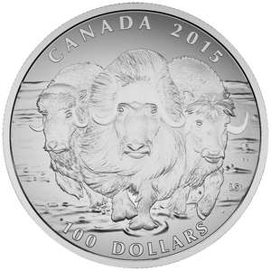 The 1 oz $100 Muskox Fine Silver Coin 2015 is a highly sought-after investment-grade silver coin by the Royal Canadian Mint. With bold design and expert craftsmanship, it exhibits perfection.