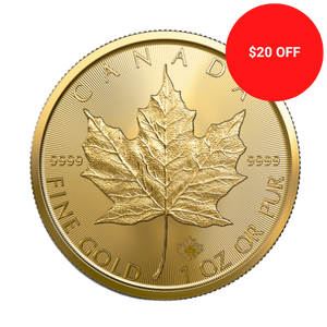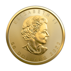 The 1 oz Canadian Maple Leaf Gold Coin 2022 is a highly sought-after investment-grade coin minted by the Royal Canadian Mint. First introduced in 1979, it was the first coin with a .9999 purity level and is now one of the most popular gold coins globally. The 1 oz Canadian Maple Leaf Gold Coin 2022 boasts enhanced security features including radial lines, a micro-engraved maple leaf, and Bullion DNA anti-counterfeiting technology.
