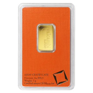 Diversify your portfolio by purchasing a 5 gram Valcambi Gold Bar!
