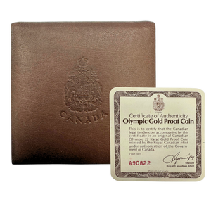 Indulge in nostalgia with our 1976 Olympic Coin Leather Display Box. Crafted in rich brown-stained genuine leather, this box is designed exclusively for your Olympic Gold Coin. Complete with a certificate, it's not just storage; it's an investment safeguard. Enhance the elegance of your collection—order now.